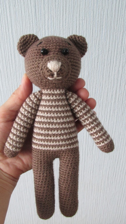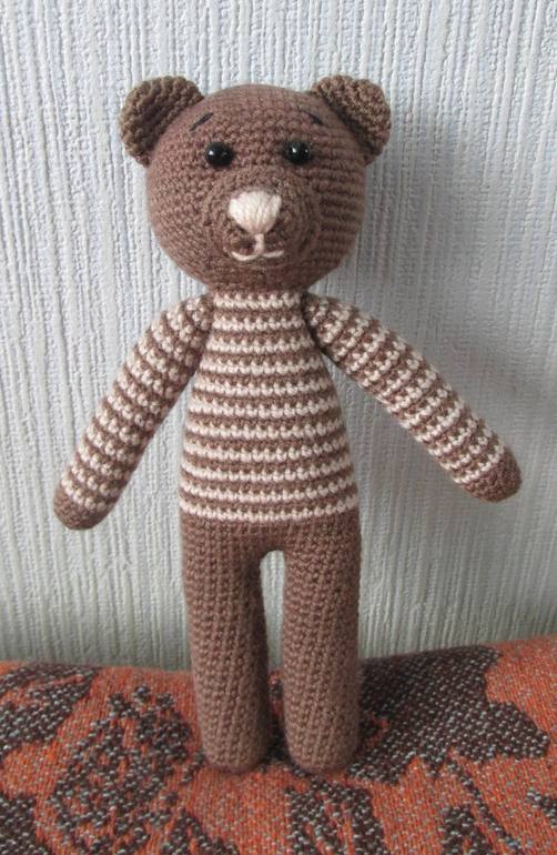 Амигуруми (вязаные игрушки)Пора утепляться. Даже мишка надел свой лучший полосатый свитер)