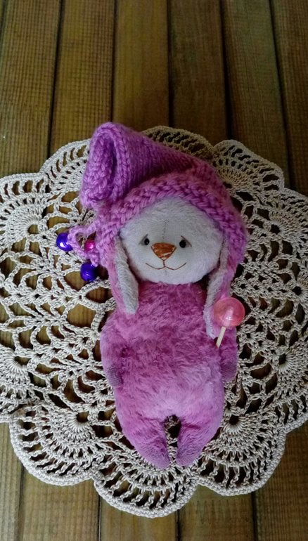 Здравствуйте все)) У меня третий товарищ из сладкой братии. Зайка-в-шапке-с-леденцом.