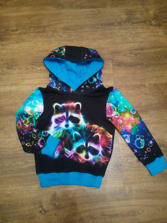 Здравствуйте, ещё не стирала, перед пошивом ткань декатировала, кофточка на рост 98 см