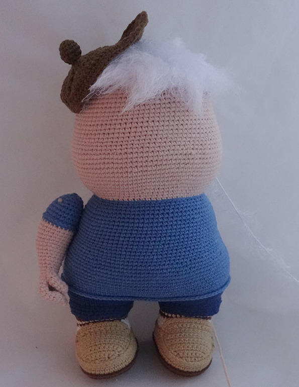 ох, 1,5 недели, как мало уже, я очень стараюсь успеть) Гюнтер оказался весьма прожорлив, столько синтепуха поглотил в себя, ужас)Творю ему прическу. Волосы решила связать, пряжа только белая нашлась, будем потом волосы красить, не знаю, что выйдет , переживаю по поводу волос.