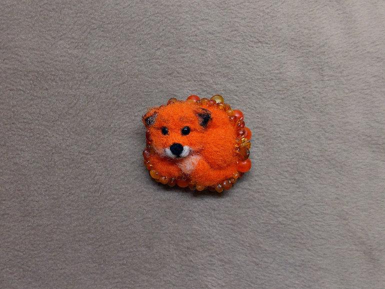 Фелтинг (валяние шерсти)Сваляла я в дополнение к комплекту с лисками вот такую брошь) Долго лежали у меня рассыпавшиеся янтарные бусы и вот дождались своего часа))) (3 фото)