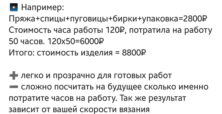 Ну я напишу как я вижу ) Я когда только начинала брать денежку за свои рукоделки . Первые самые работы помню которые я вязала кому то ( не считая тех что я просто дарила ) то просила самих назначить цену .. Либо брала в размере себестоимости работы ...