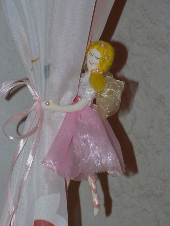 ......готовы, очередные подхваты для штор. Куколки будут украшать детскую маленькой принцессы. Рост феичек 21 см., крепление - ленты. Под катом 4 фото.