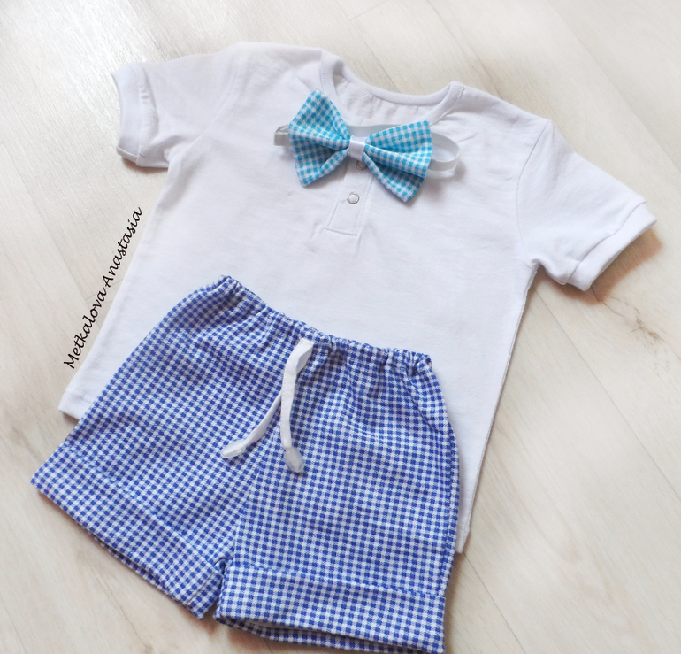 а это сыночку подруги сшила костюмчик ко Дню рождения. Футболку обычную уже сама моделировала. Шорты тоже переделывала, выкройка вроде из шкатулки.