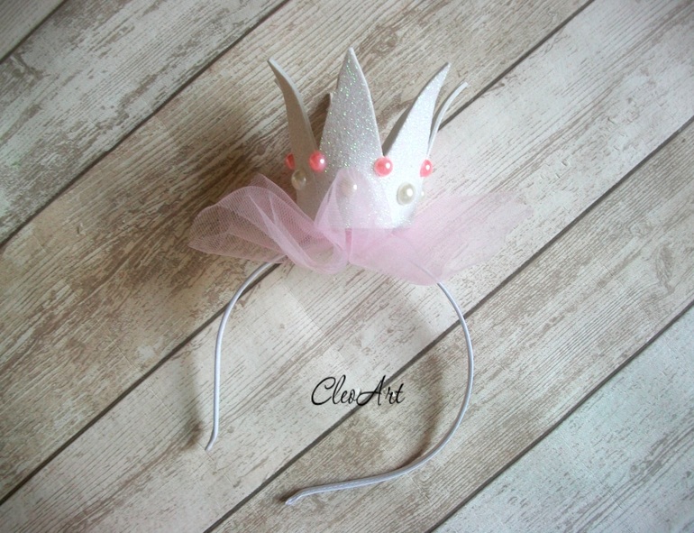 Корона из блестящего фоамирана, дополненная жемчужными бусинками и "юбочкой" из воздушного фатина