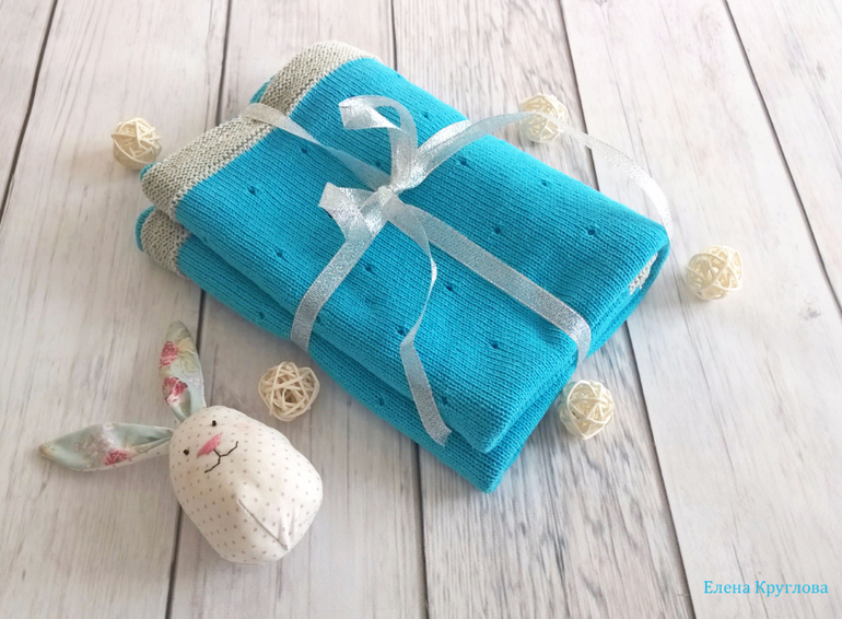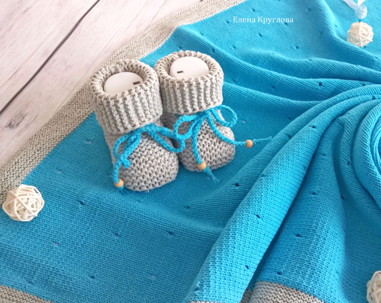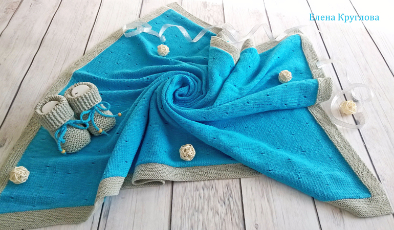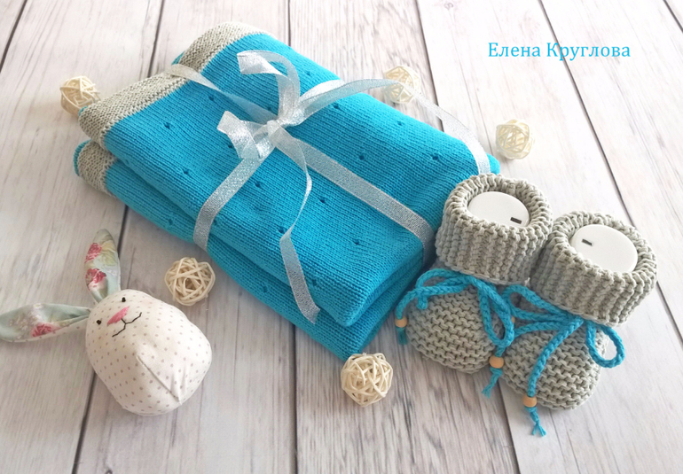 Покажу еще комплект, связанный на машине. Комплект состоит из пледа и пинеток. Пряжа Ярнарт софт коттон. Плед получился прям невесомый и мягкий. Под кат еще 3 фото
