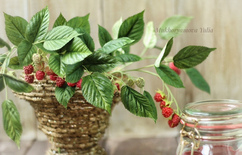 Просто ВАУ ВАУ ВАУ!!! Обалдеть, какая красота!!! Судя по тому, как натурально выглядит малинка, может, и варенье из этих ягодок??? Не удивлюсь этому, Вашему мастерству! И сразу так захотелось чай с хлебушком и малиновым вареньем!!! А листики малины из чего?