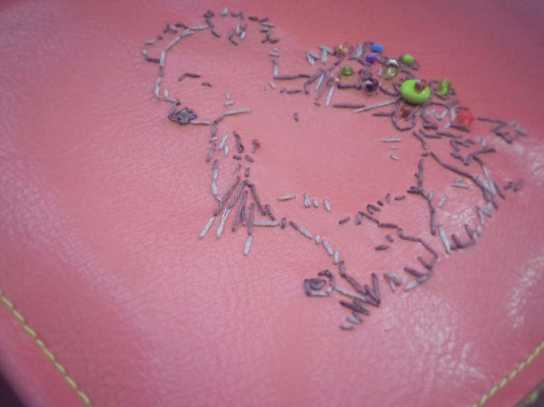 Мишенька украшает папочку для ИЗО, что-то вышить мишу на кож.заме оказалось сложнее, чем сшить папку)