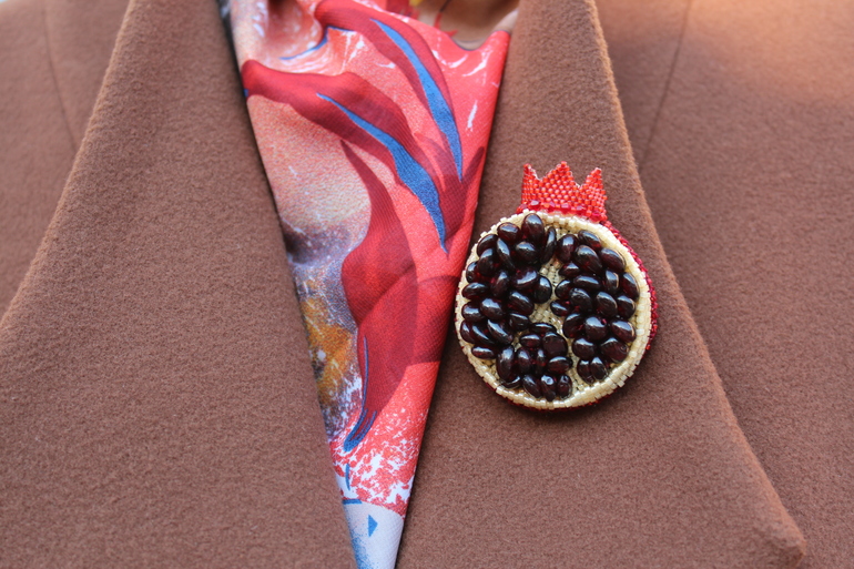 Бижутерия для слингомам. Слингобусы. Грызунки.У меня гранат почему-то ассоциируется с холодным временем года! Может ,потому что летом много других фруктово-ягодных вкусняшек? Вот , я и решила сделать брошь на пальто или , может даже, на шубу!