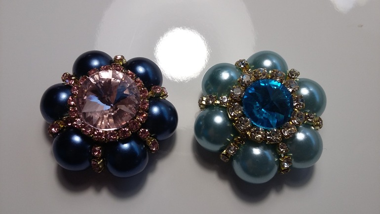 тут бусины 10 мм, на синей стразинка скорее 12 мм + страз лента SS6, а на голубой стразинка 10 мм + страз лента SS12