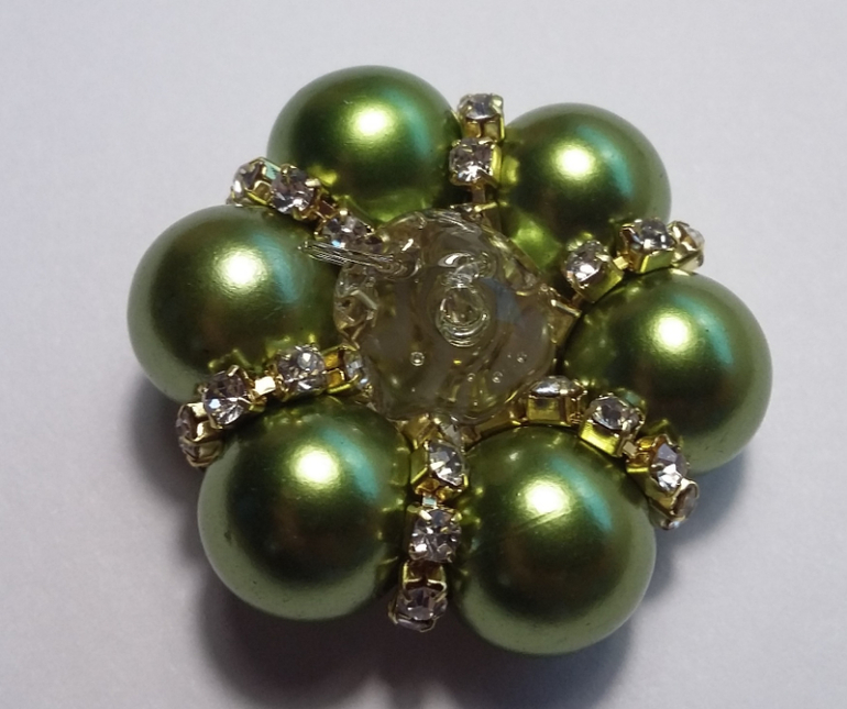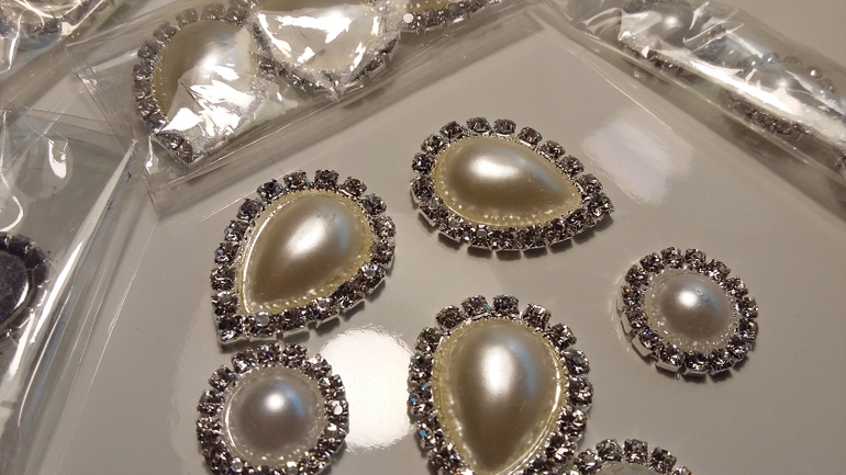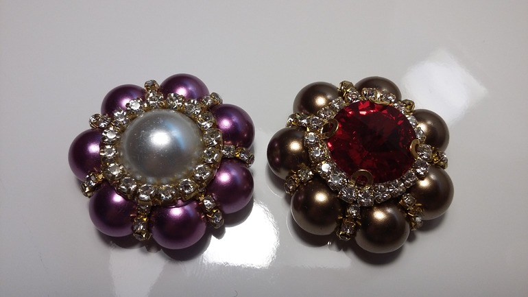 тут обрамляла полубусину страз лентой и рядом ШИКАРНАЯ готовая стразинка, кот уже была обрамлена. бусины 10 мм в колве 7 шт. полубусины уж не помню размер + страз лента SS12, коричневая.. готовая стразинка.. диаметр с лентой 14 мм.