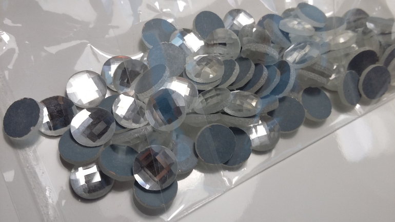 Показывать как обрамляю стразинку страз лентой не буду.. очень уж муторно, сорри.. Но расскажу пару моментов. Лично мне нравятся ТОЛЬКО стекл стразинки для обрамления. Т. к. они ну просто волшебны и сказочно сияют. Есть два типа этих страз: с плоским дном и заостренным. Увы, но мне больше нравятся с заостренным. Т. к. в самих стразах там больше граней врутри и от этого они кристально чистые и блестящие. А стразинки с плоским дном, хоть они и стекл., но не имеют этой глубины и чистоты стекла. Они какие-то мутные и не прозрачные. Конечно тоже блестят, но не так волшебно. Обрамлять плоские стразинки это проще простого.. капнул клей, положил стразинку, вокруг стразовую ленту и готово. Но с неровным дном очень сложно ее обрамлять. Т. к. она ровно не ложится на основание, ерзает, стразовая лента под нее подлазиет при обрамлении. В общем.. суета-сует лично для меня!!! Чем меньше стразинка, тем менее у нее выпуклое дно и ее легче обрамлять. Сейчас уже вроде как-то привыкла к этому неровному дну и даже "подружилась" с ним ))) Клею их на клей ТИТАН. Просто набираю его в самый обычный шприц без иголки и вперед. Основа это парча. Она блестящая и ее абсолютно потом не видно. Когда использую желтую страз ленту, то золотистая парча, ну а когда обычную, то серебристую парчу. Ниже парочка фото стразинок с плоским и неровным дном