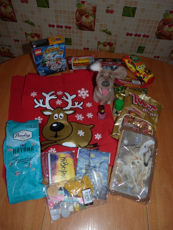 А это для всех нас подарочки и гостинцы !!!! За пуговки-ленточки для меня отдельное спасибо и от пацанят за игрушки СПАСИБИЩЕ !!!