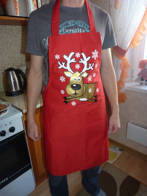 Это фартучек, ручная работа !!! Какой он классный !!! Примерила на модель, получился "олень в олене" !!! (это я так шучу, по доброму ....)