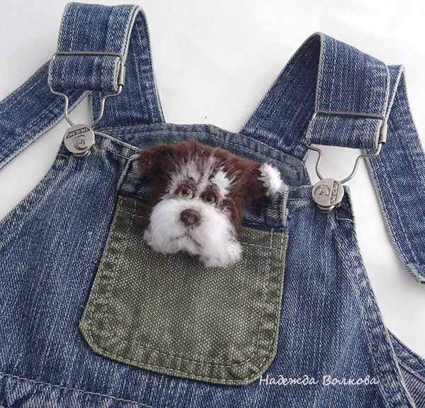 Брошь вязаная-щенок Семка