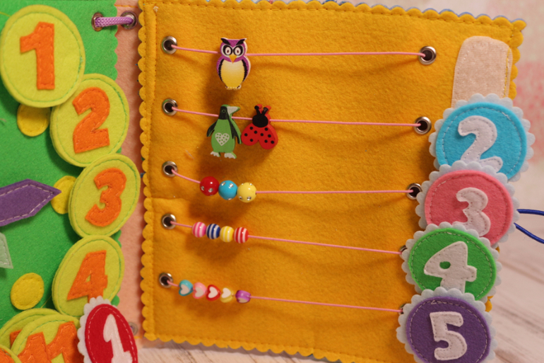 Стр 9. Учим счет с бусинками различными. Цифры на липучках.