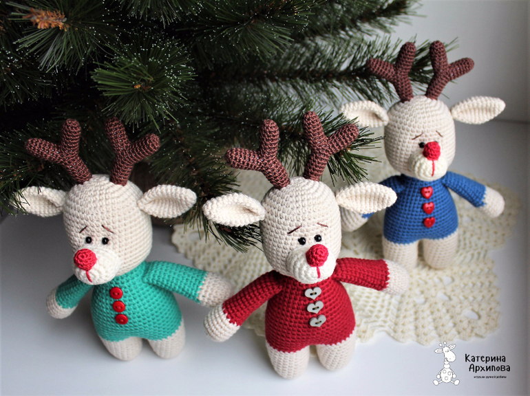 Оленята ростиком 18см, так же нашли дом и вяжутся новые...