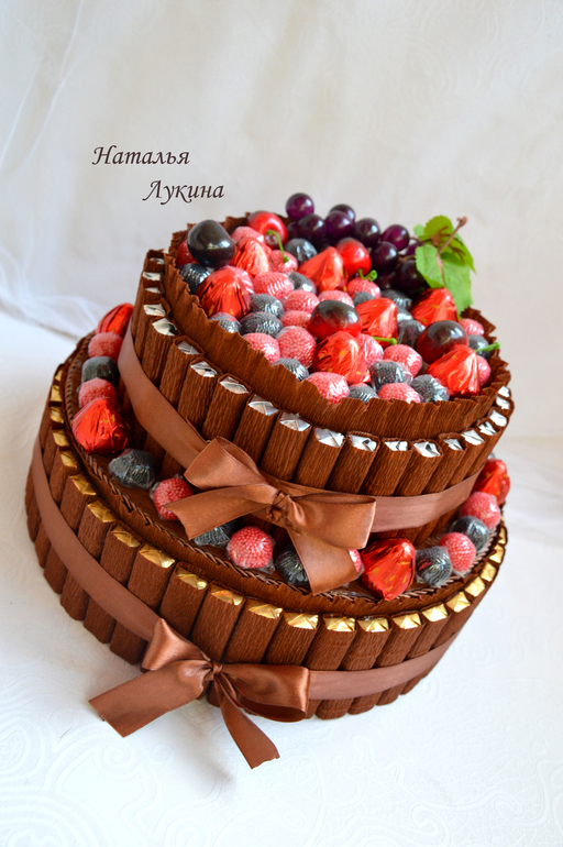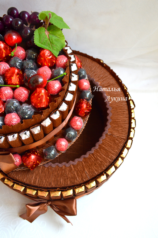 Букеты из конфет. Свитдизайн.Всем Привет! Торт - шкатулка из конфет "Шоколадный брауни". В составе: шоколад Мерси, Вдохновение, конфеты Осенний Вальс, мармелад Ежевика и малина.