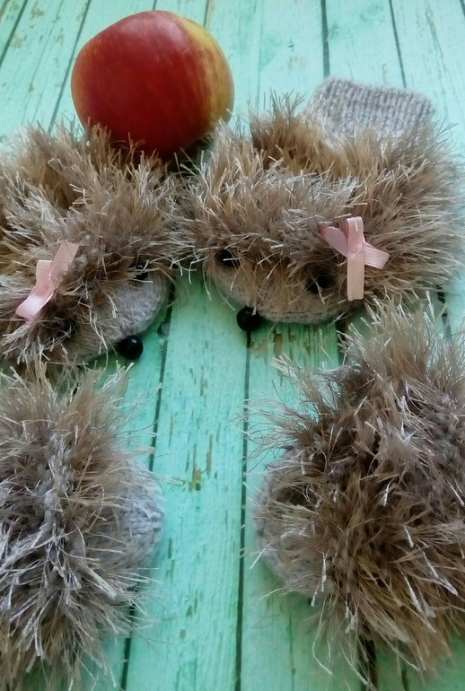 3. Варежки- ёжики для малышей. Мериносовая шерсть + "травка"