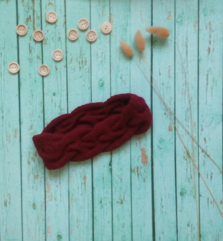 Вязание спицами1. Повязка -коса цвета марсала из полушерсти. Выполнена без швов