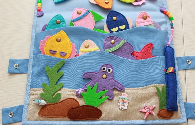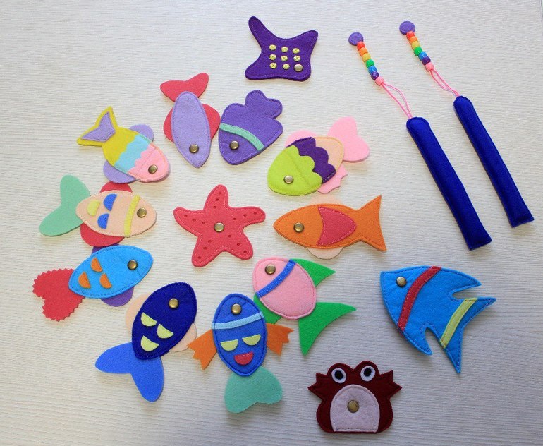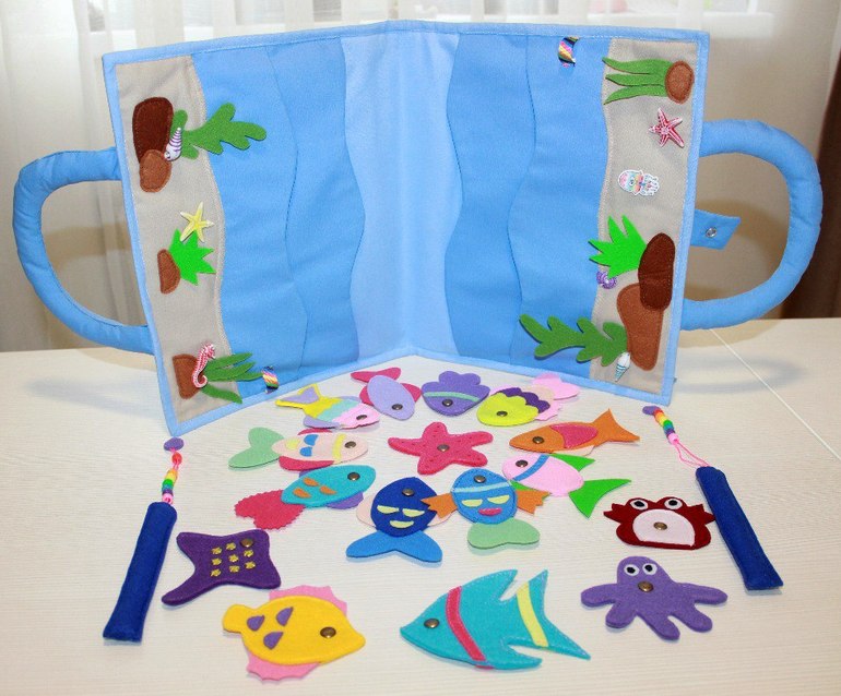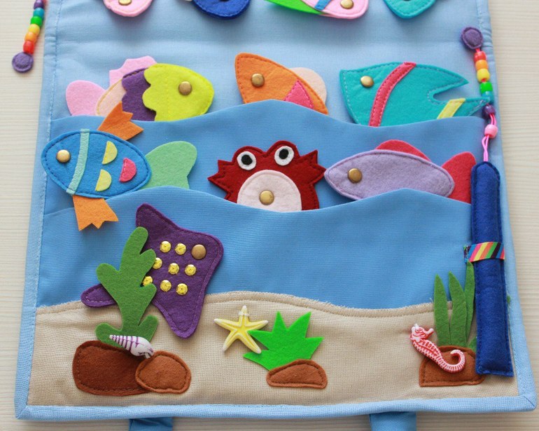 Все аппликации, морские обитатели, магнитные удочки выполнены из корейского фетра.