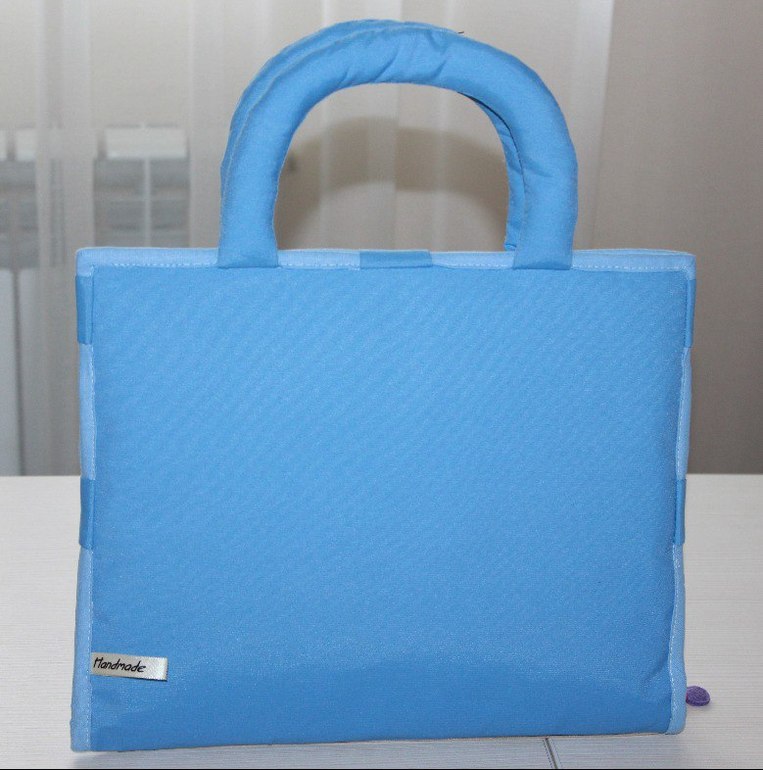 В сложенном виде планшет представляет собой сумку, закрывается с трех сторон на пять вставных кнопок. На обложке - батискаф и морское дно с рыбками-пуговицами.