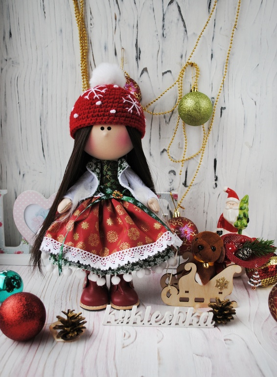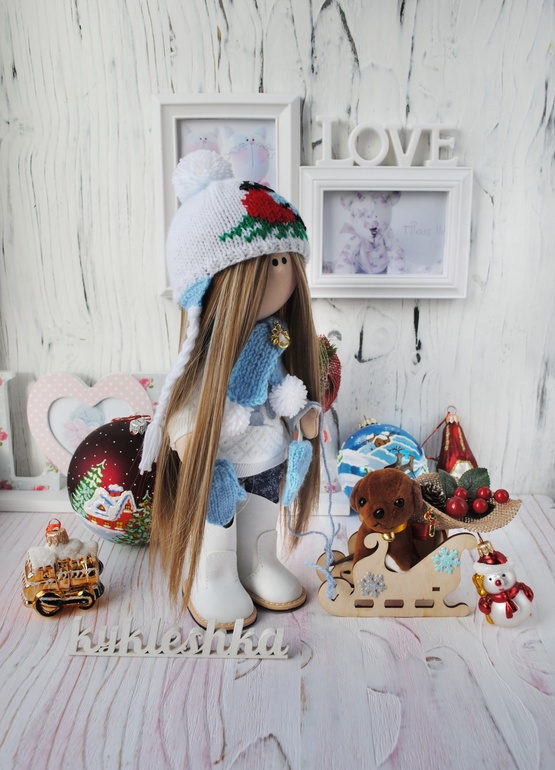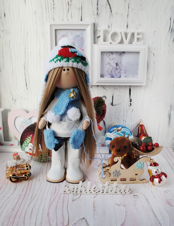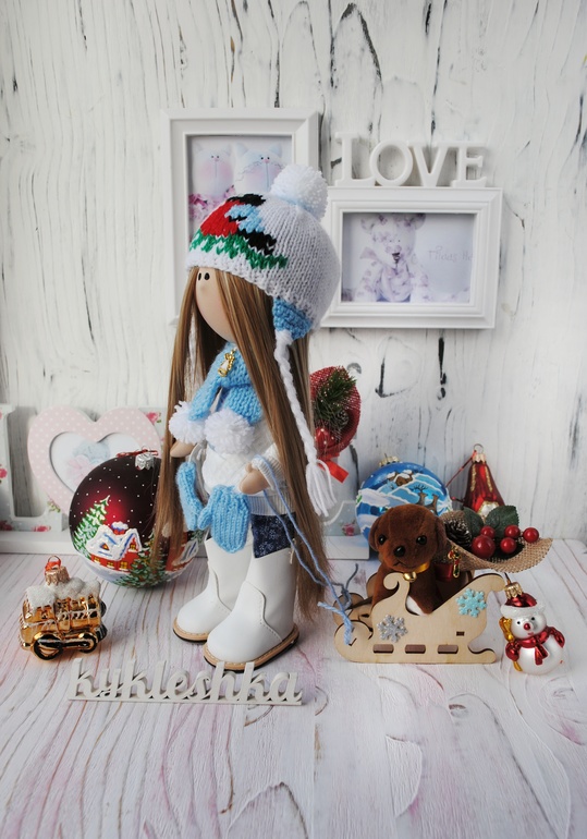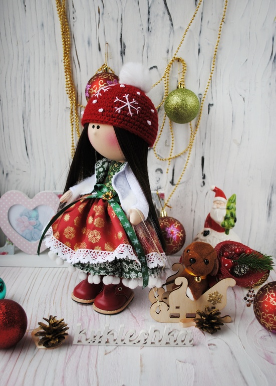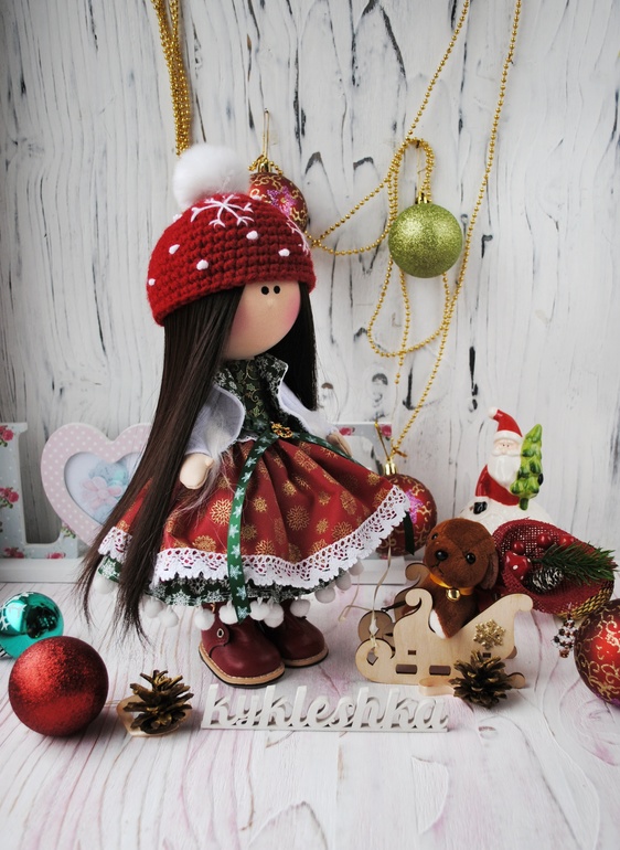Первая малышка новогодняя, с саночками. В саночках везет собачку и новогоднее украшение.