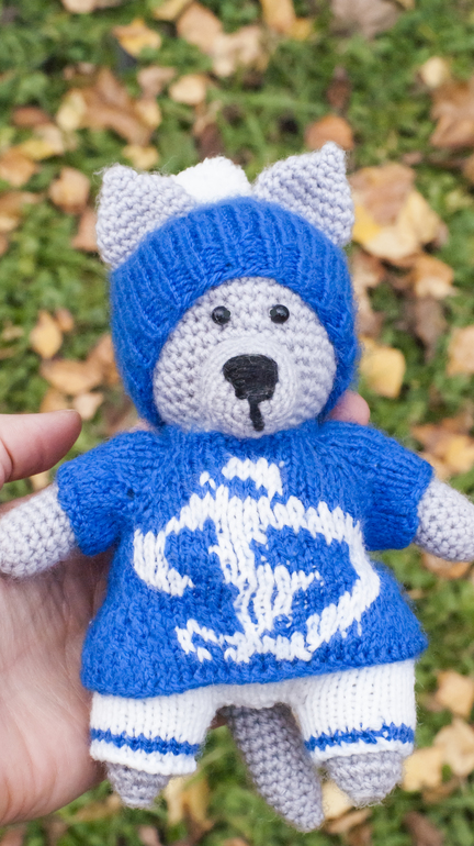 Амигуруми (вязаные игрушки)связала на заказ знакомой. у нее 2 мальчика, хоккеисты. болеют за "Динамо Москва." Волчата с игровыми номерами мальчиков.