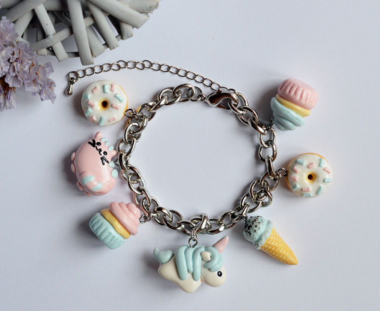 Лепка из пластики (полимерная глина) (ТОЛЬКО ГОТОВЫЕ РАБОТЫ)Выполнен на заказ. Длина цепочки 19 см + цепочка-удлинитель. Размер подвесок около 1,6 - 2 см. Еще фото под катом.