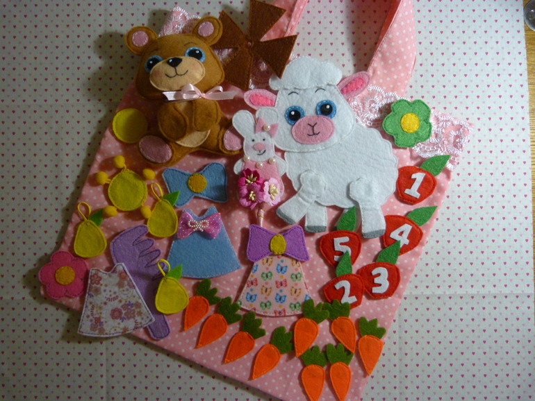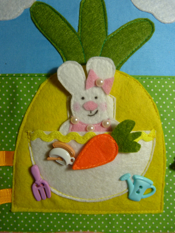 ФетрЗакончила на днях развивающую книжечку и уже подарила маленькой девочке на 2-х летие. Книга 20 см./20 см., крепление - переплёт, 4 разворота, сзади - карман на резиночке, в нём живёт медвежонок. 30 съёмных элементов и несколько развивающих. Все подробности под катом, много фото, более 5.