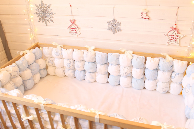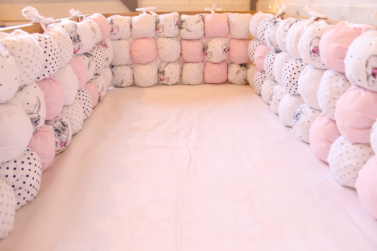Всем привет🙋Сшились два набора бортиков💕Нежно голубые с мишками 🐻для мальчика 👨и нежно розовые с зайками 🐰 для девочки 👩 под кат 6 фото😘