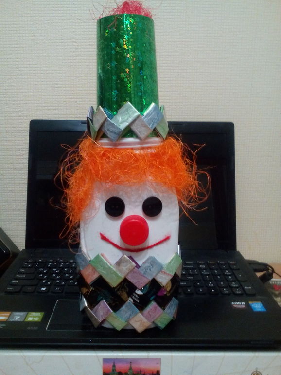 Нам в школе задали задание по кружку сделать щелочную игрушку из бросового материала, вот он Клоун. Поехал на конкурс))))