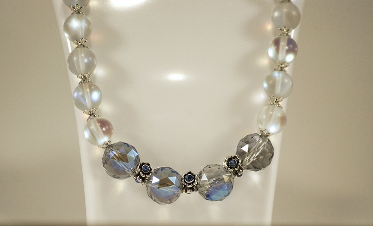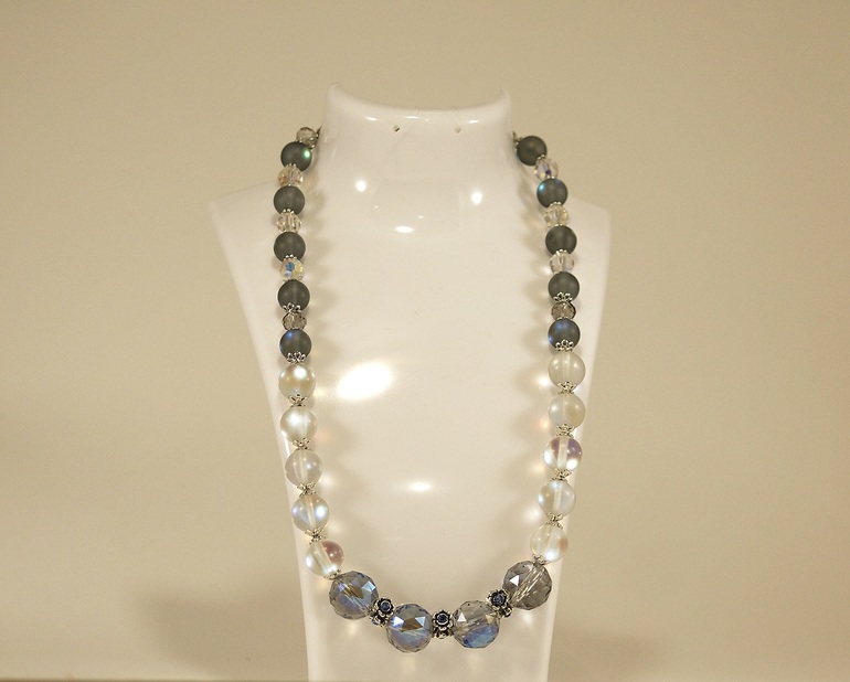 Бижутерия для слингомам. Слингобусы. Грызунки.Всем привет! А у меня опять новиночка. В этот раз сделала себе на новый год. Колье из искусственных синтетических бусин "Лунный камень", хрустальных бусин и фурнитуры под золото. Длина около 50 см. На солнце переливается бесподобно. Давно о таком мечтала.