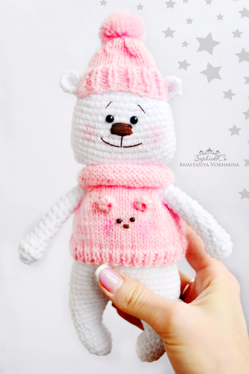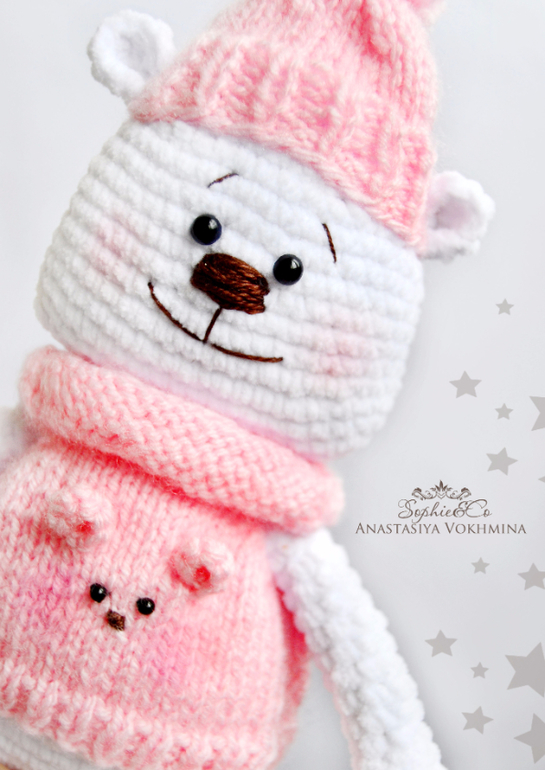 Мишка связан он по описанию Клары Гуржий. Рост вместе с шапочкой 23 см.