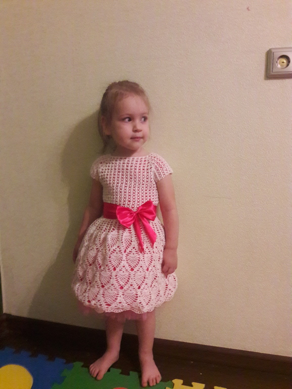 Вязание крючком (РАБОТЫ И СХЕМЫ)Связала дочке на Новый Год праздничное платье.
