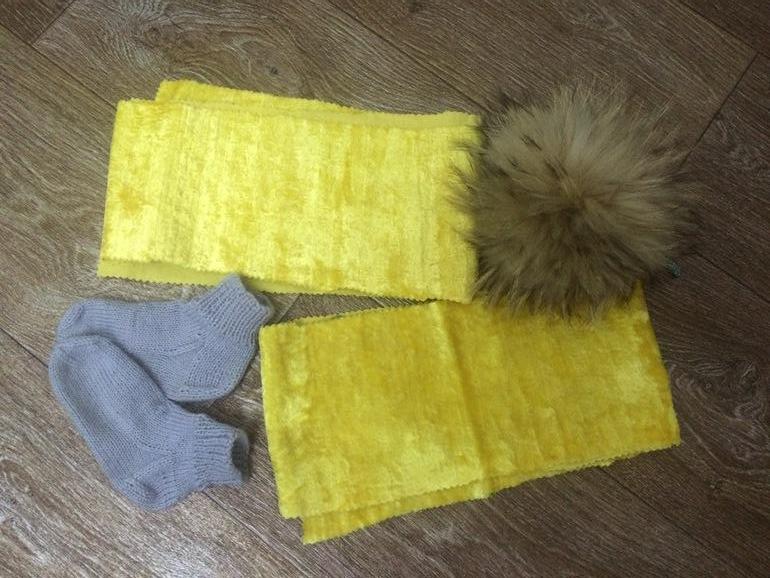 2 кусочка советского плюша примерно 14 на 125 каждый, меховой помпон, вязанные шерстяные носочки длинна ножки примерно 14смСлон 21 от Татьяны https://m.babyblog.ru/user/info/oleinikt