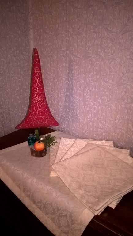 Текстильная елочка на пенечке,милое украшение новогоднего интерьера.Не займет много места, уютно устроится на рабочем столе, на полочке.Высота елочки 35см. И текстильные салфетки к новогоднему столу,порадуйте себя и своих близких красиво накрытым столом.Размер салфеток 40*40,6 штук,ткань для столового белья с тефлоновым покрытием,пятна им не страшны.
