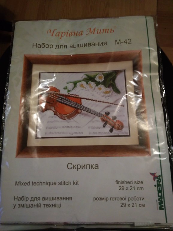 Новый набор для вышивки в смешанной технике бисер+ мулине, пострадала при хранении упаковка. Чаривна мить "скрипка"
