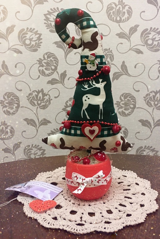 В предверии нового года у меня в качестве слоника новогодняя текстильная ёлочка в кашпо.