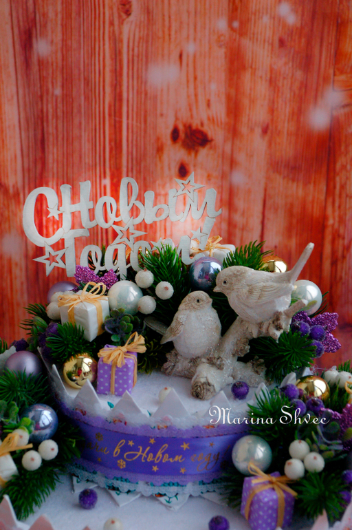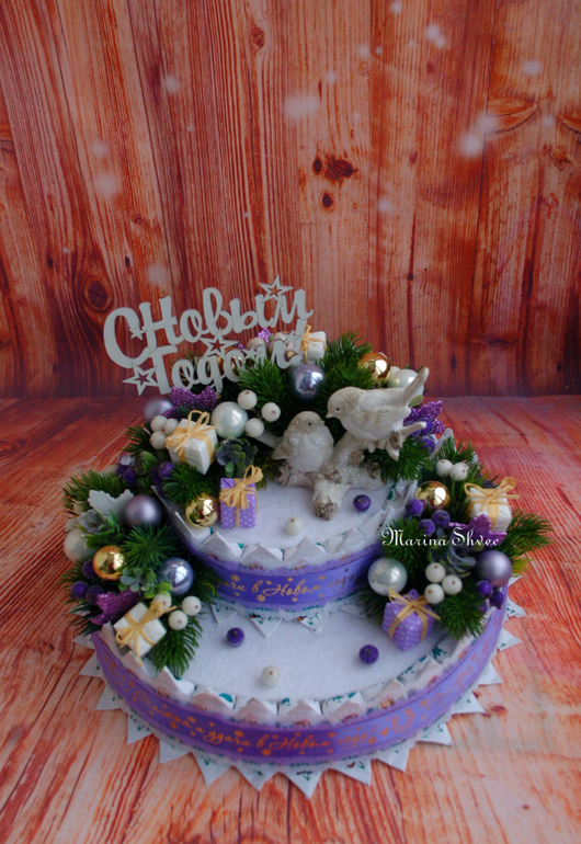 Новогодний тортик в сиренево-фиолетовой гамме.