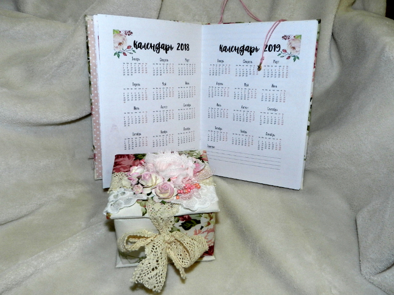 Набор цветочно-кружевной, многослойный..Блокнот с красивыми листочками, имеется календарь на 2018, 2019 г. И коробочка-малышка для хранения украшений!!!!