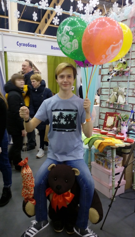 А этот молодой человек верхом на медвежонке помогал на выставке своей подруге - он бегал между рядами, привлекал внимание, все хотели фотографироваться с ним)) Крутой чувак.