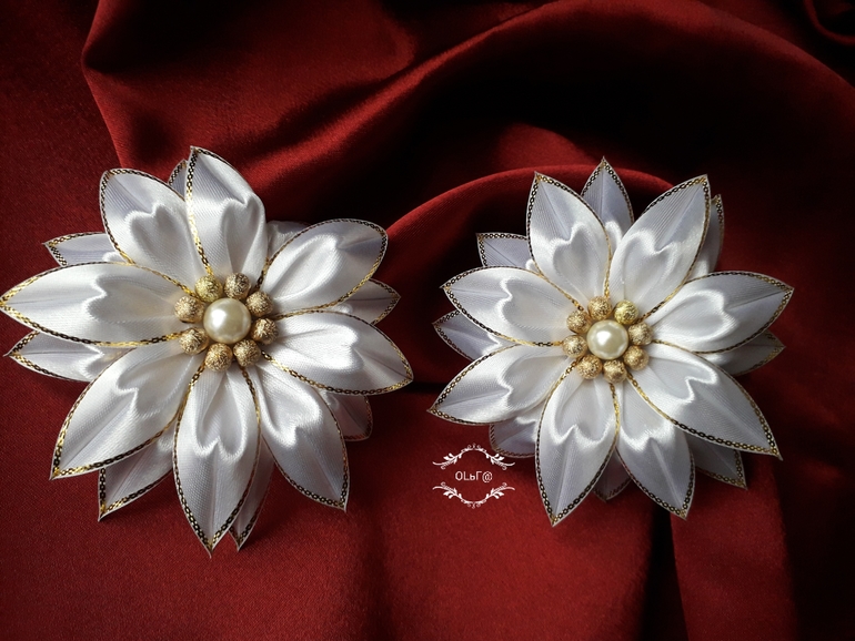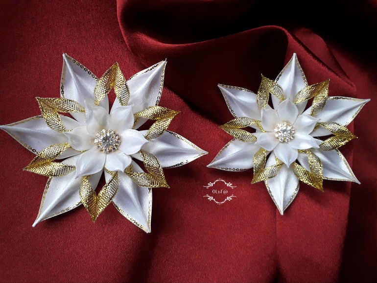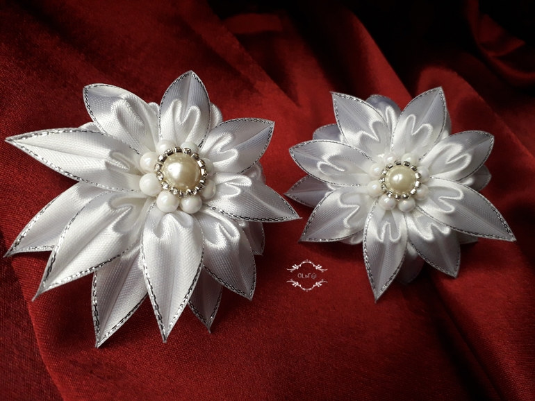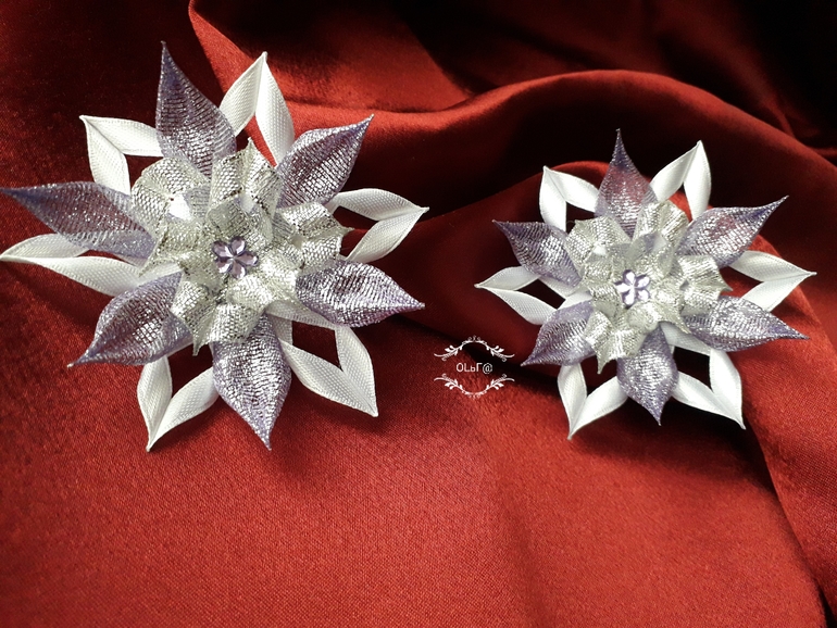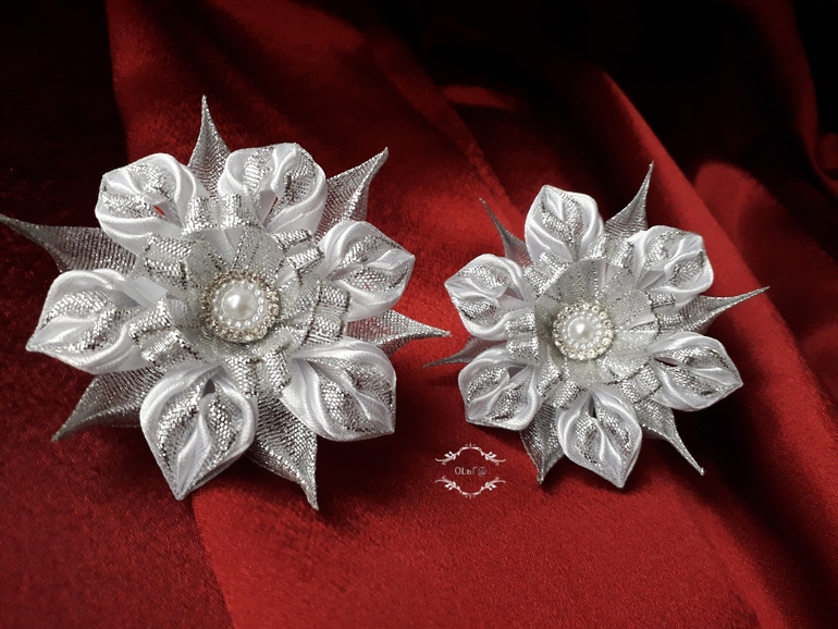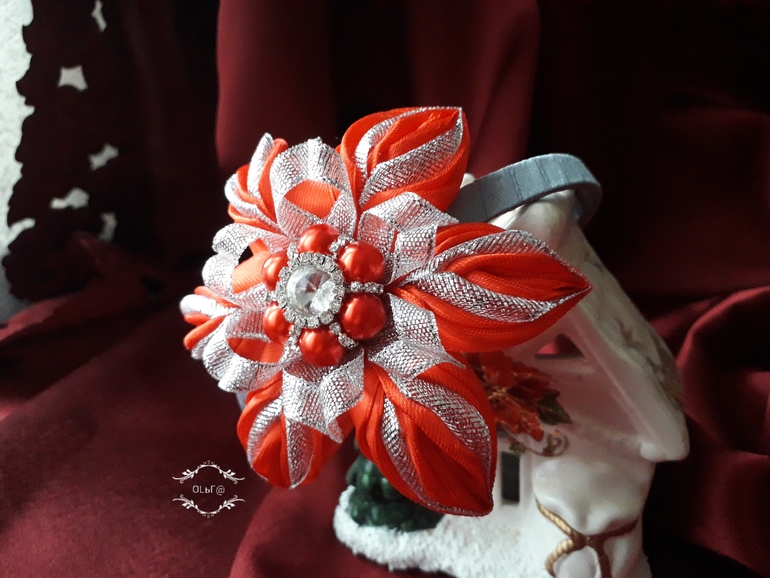 Цветы из ткани и форма. Канзаши. Украшения для волос.Вот такое блестящее настроение у меня - предновогоднее!