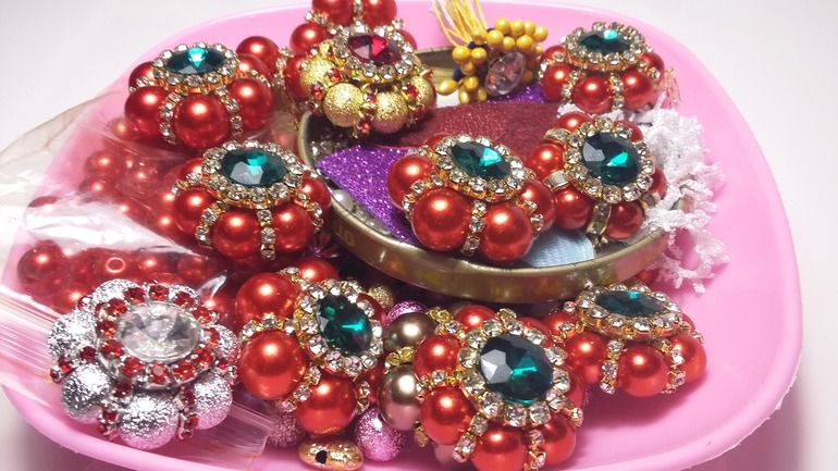 Бисеринки вместо страз.ленты я использовала пока она мне не пришла) чем бисер хорош - море цветов!