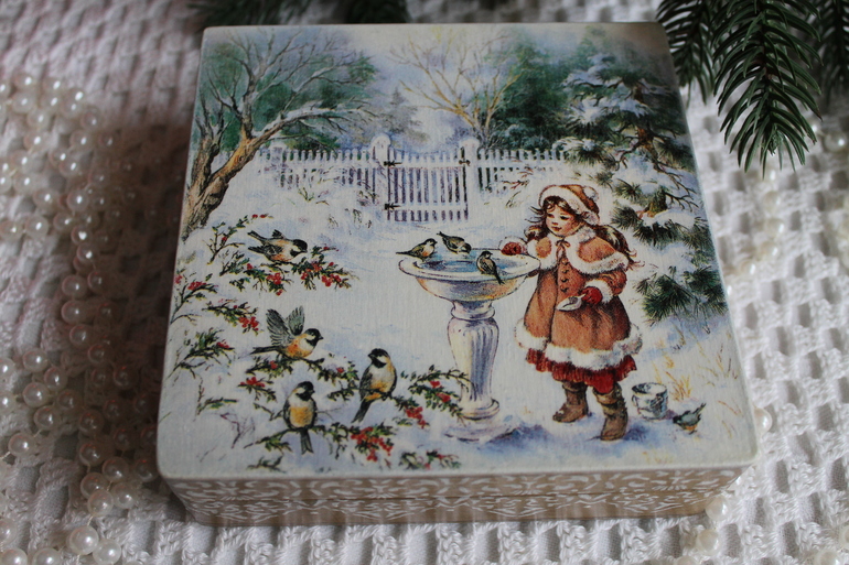 Ах, Яниночка, что не шкатулочка - то праздник!!! У этой настроение такое "из детства"... кажется, что если заглянуть вовнутрь, то найдётся где-то на дне что-то оооочень важное, что хранит какие-то воспоминания или эмоции прошедших лет))) (это, наверное потому что я так давно в наших краях не видела снегирей, а тогда давно в детстве мы их точно так же (как на картинке девочка) кормили рябиной в детском саду)))