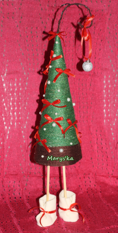 Изначально она была с ногам, но потом ноги благополучно отвалились и отнесли мы в сад елку безногую.