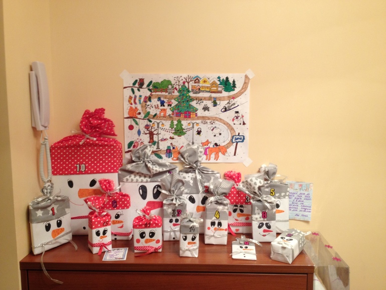 Вчера мы смастерили таких милых снеговиков. Выполняем ежедневно задания от эльфов и деда мороза. Если все задания выполнены, то на следующий день можно получить сюрприз дня. А если залениться- сюрприз исчезнет.... ( сюрпризы у нас в виде снеговиков)
