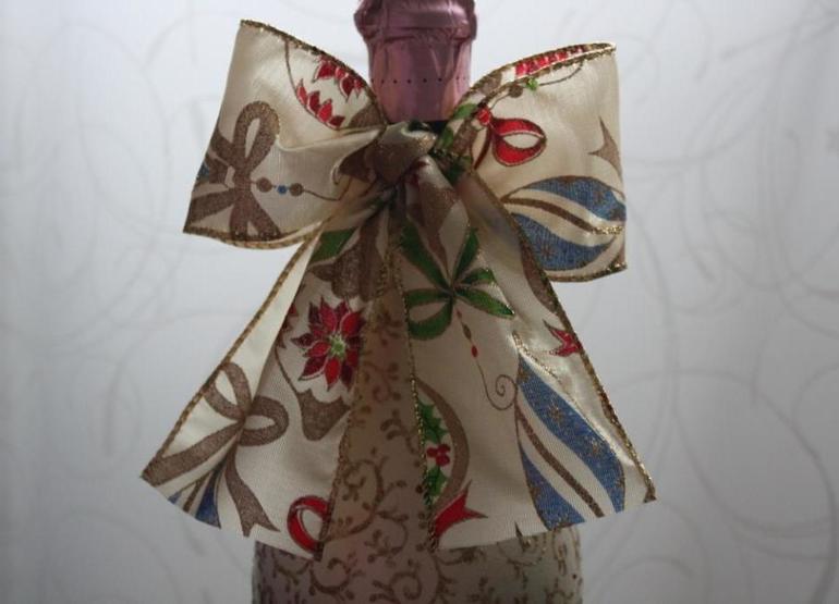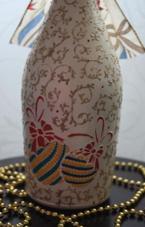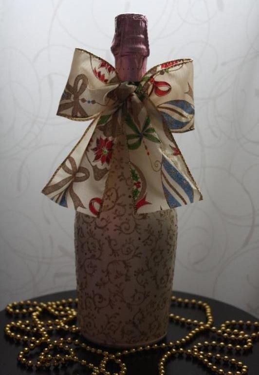 Декор новогодней бутылки.