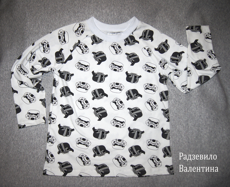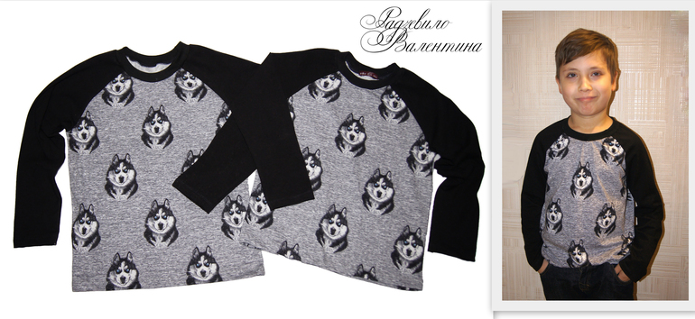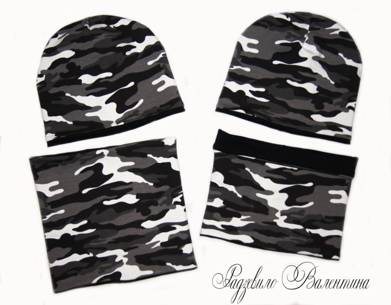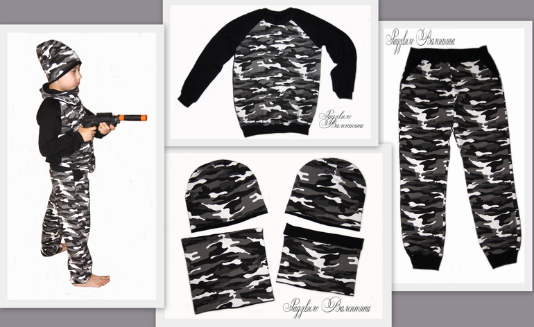 Костюм сшит из футера двунитки.Сейчас в нем на физкультуре гоняет.А комплект из шапки и снуда шила один ему,второй на продажу.
