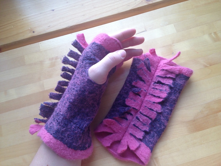 Фелтинг (валяние шерсти)свалялось как-то полотно у меня из шерсти и хб батиста, было интересно как он приваляется Как же долго оно ждало своего часа, и вот вчера я сшила из него митенки